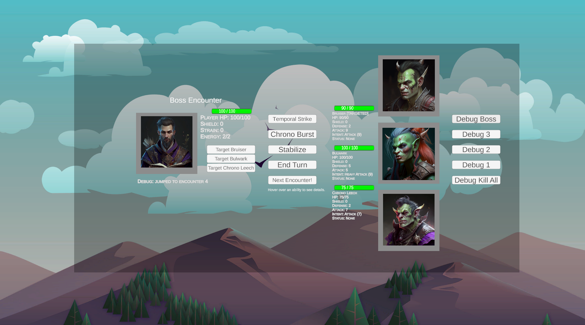 Fracture Point is a turn-based RPG where every decision carries weight and every attack pushes you closer to the edge. You play as a temporal warrior fighting through a gauntlet of dangerous enemies, and a boss who turns your power against you.